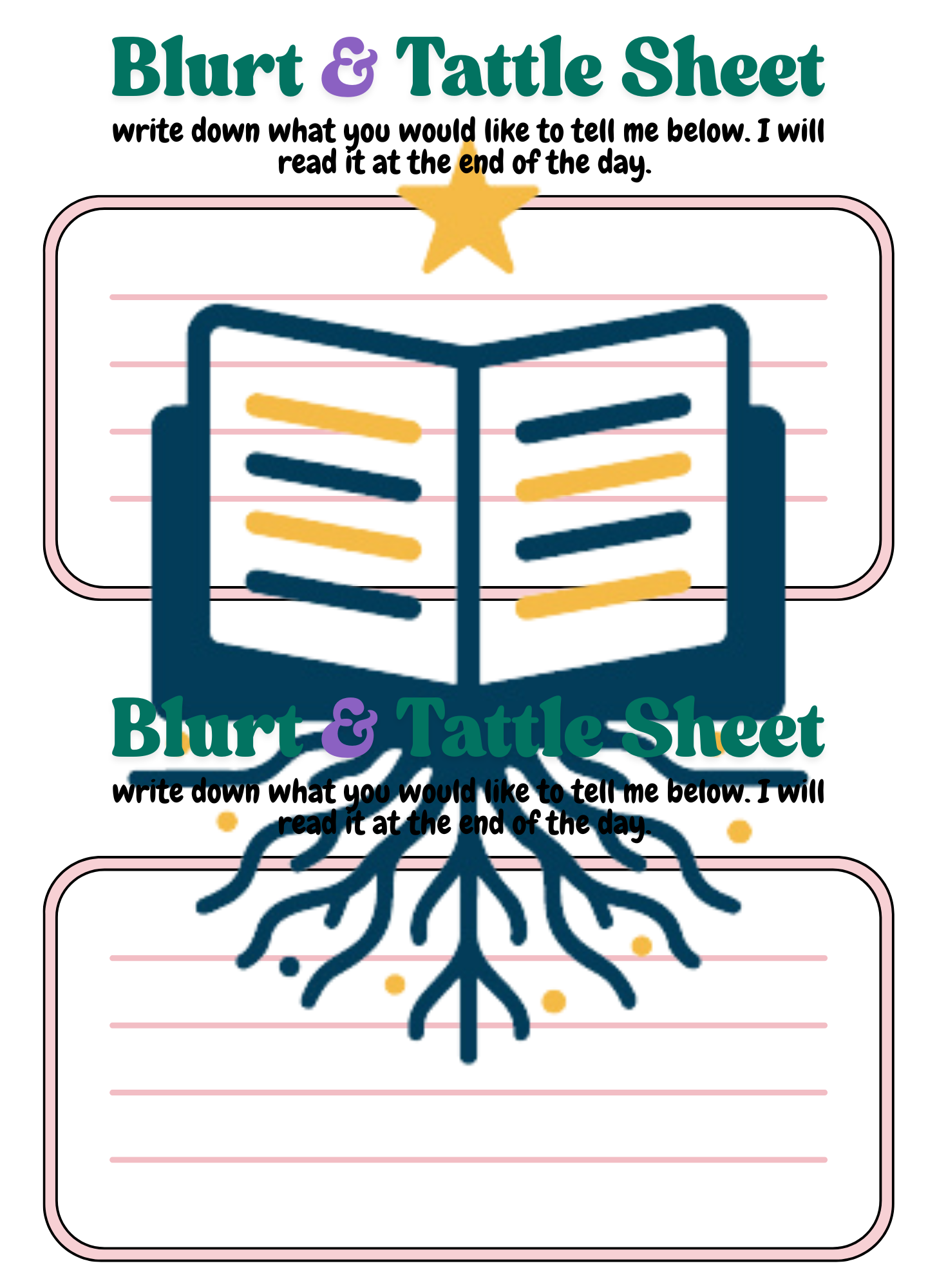 This Blurt & Tattle Sheet gives students a constructive way to express their concerns or outbursts without interrupting learning time. Instead of shouting or tattling, students quietly write their thoughts on the form and turn it in—helping teachers manage behavior while promoting self-reflection. Great for creating classroom routines that foster responsibility, respect, and calm communication. Just print and go!